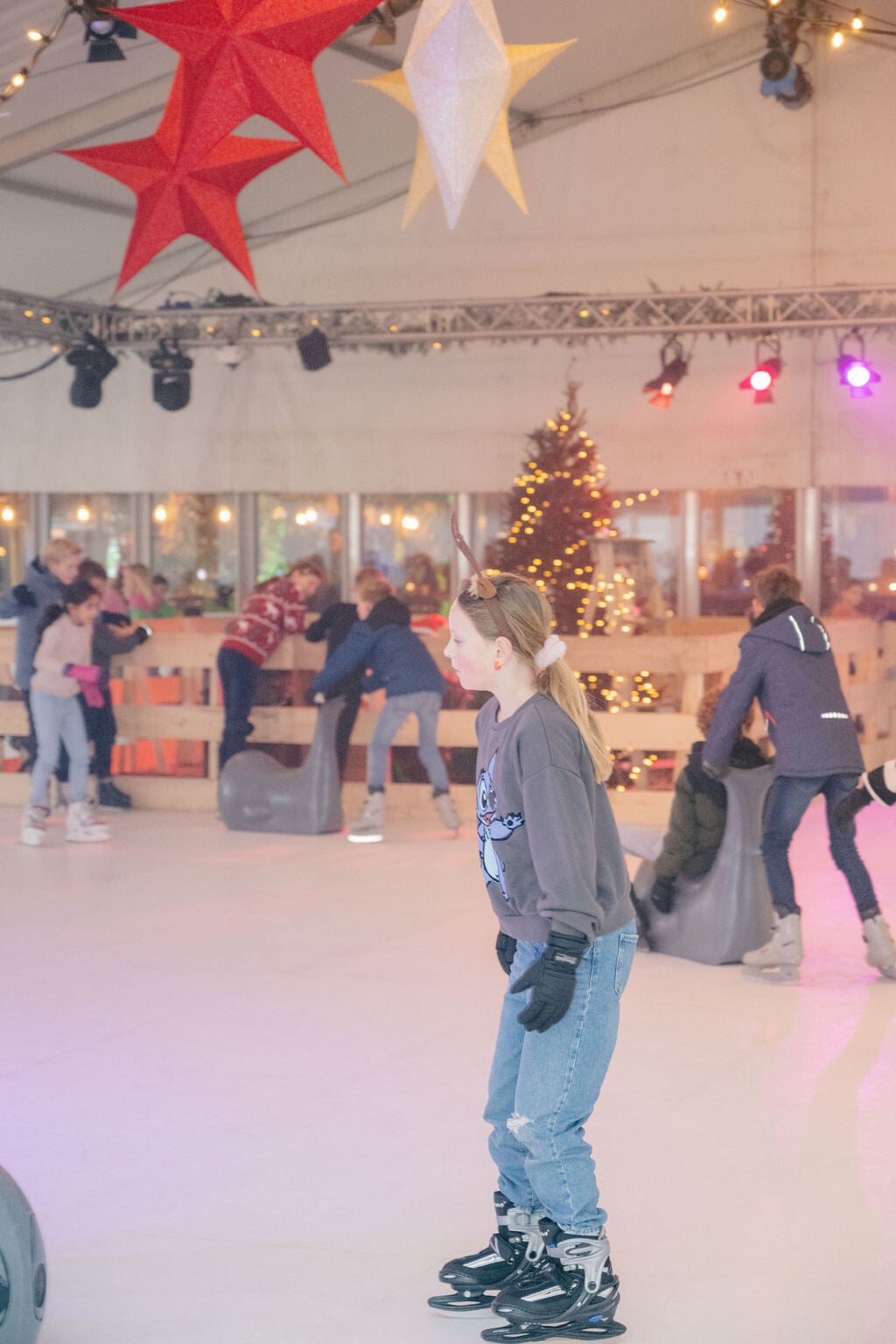 Alle Nuenense basisscholen mochten weer komen schoolschaatsen dankzij Jumbo Ton Grimberg.